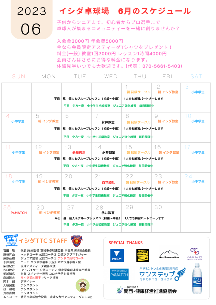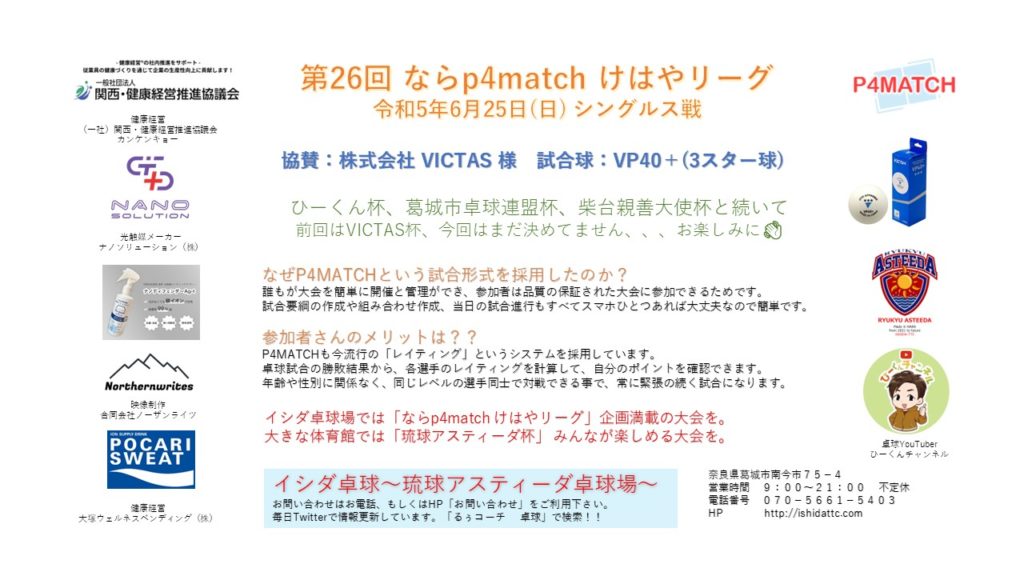 お知らせ 奈良県のイシダ卓球場のご紹介です。