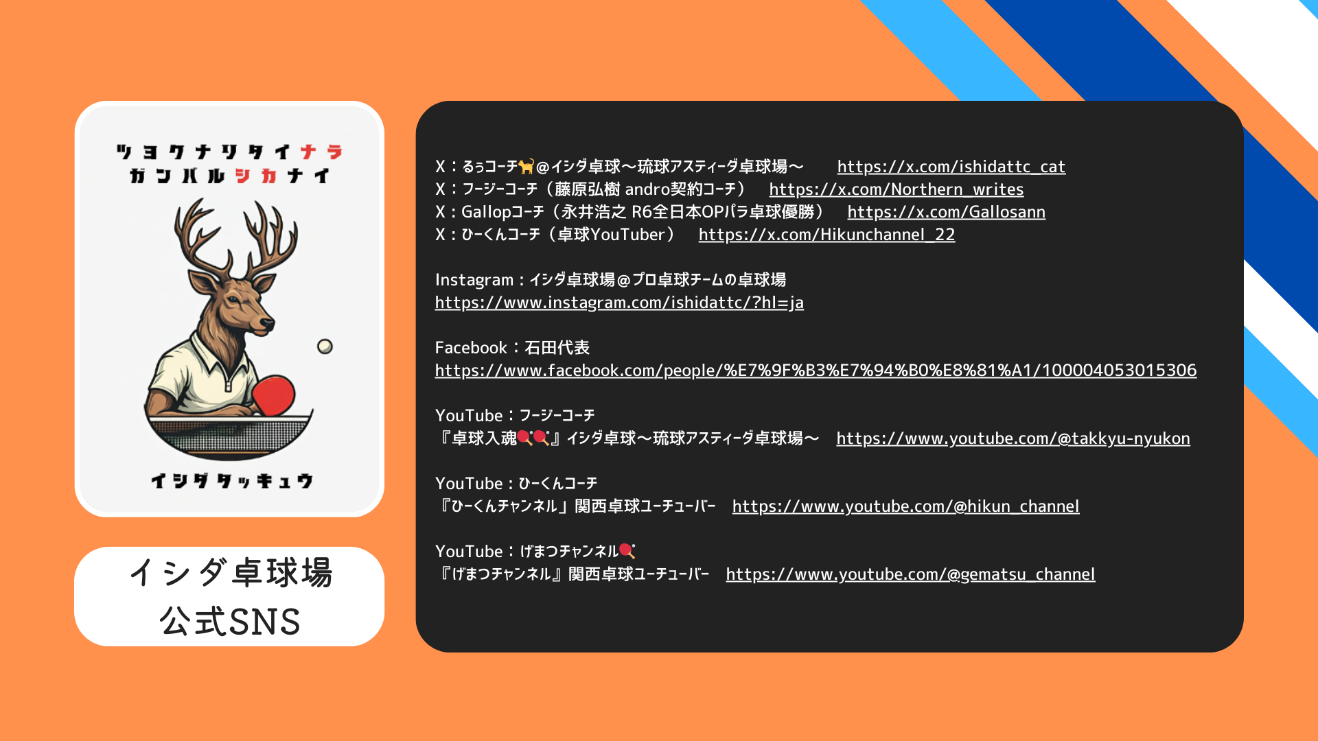 X:るぅコーチ🐈@イシダ卓球~琉球アスティーダ卓球場~